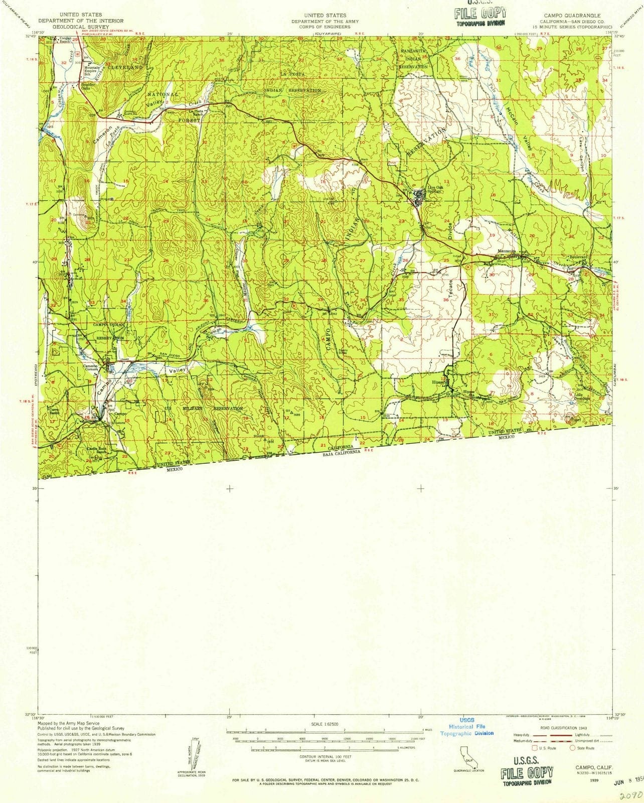 1939 Campo, CA California USGS Topographic Map – Historic Pictoric