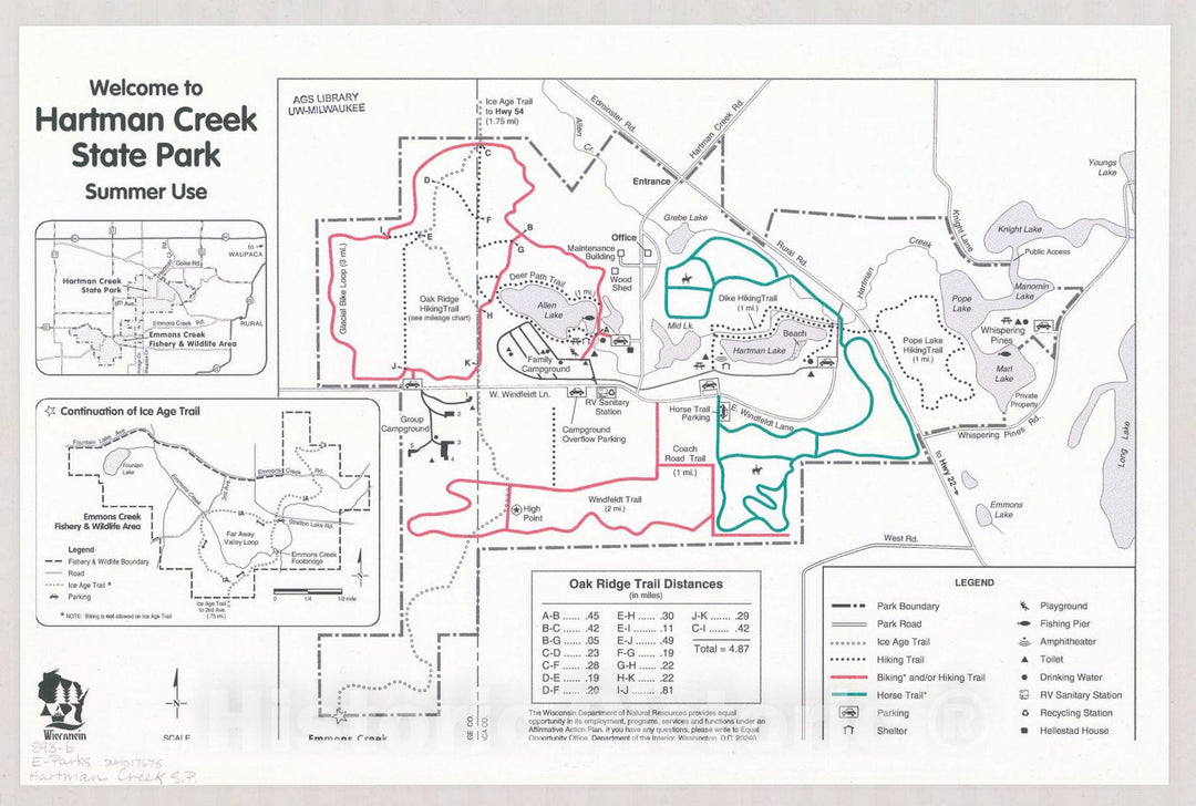 Map : Welcome to Hartman Creek State Park, summer use , Wisconsin
